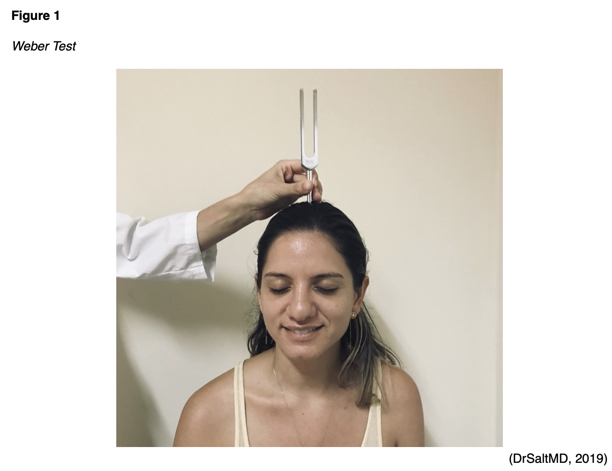 DrSaltMD. (2019). The Weber test [image]. https://commons.wikimedia.org/wiki/File:Weber_Test.jpg